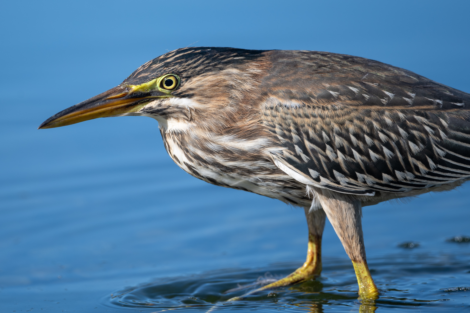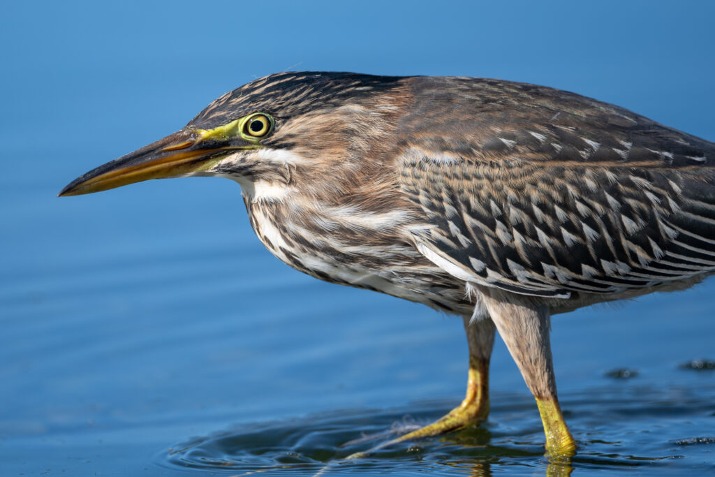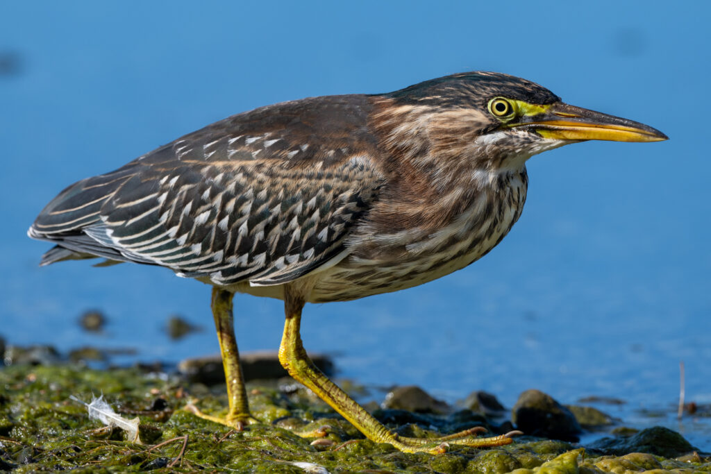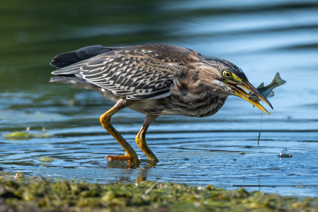 As I was waiting on one of the rocky beaches that dot the shoreline of the lake, a young Green Heron wandered up. He was so intent on fishing for his brunch that he kept walking closer and closer to me–so close that eventually I couldn’t even fit the bird in the frame of my long lens!