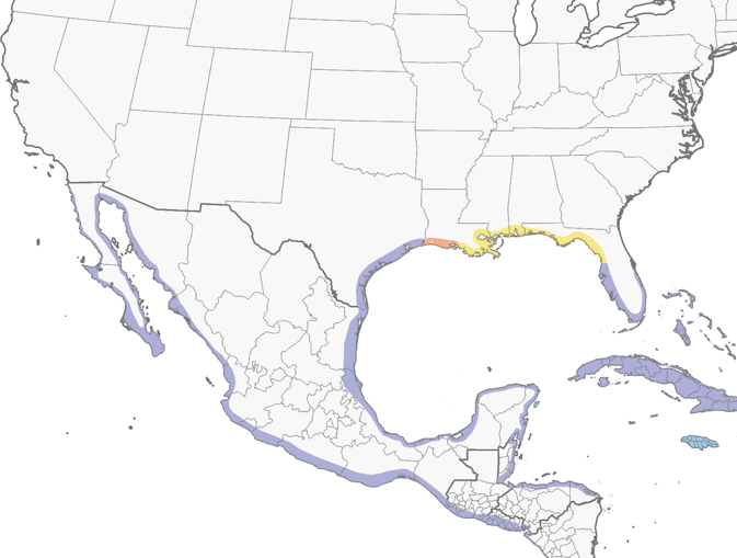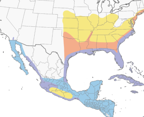 Little Blue Heron (Egretta caerulea) is relatively common in Florida–not as rare as Reddish Egret but nowhere near as common as Cattle Egret–but it’s rather rare here in San Luis Obispo County (sightings of an adult in June 2018 and an immature in November 2019, then nothing until this year). Its range map is quite interesting: fairly widely distributed in the southeast, then it hits a wall in the middle, and then, like Reddish Egret, distributed around both coasts of Mexico and Central America.