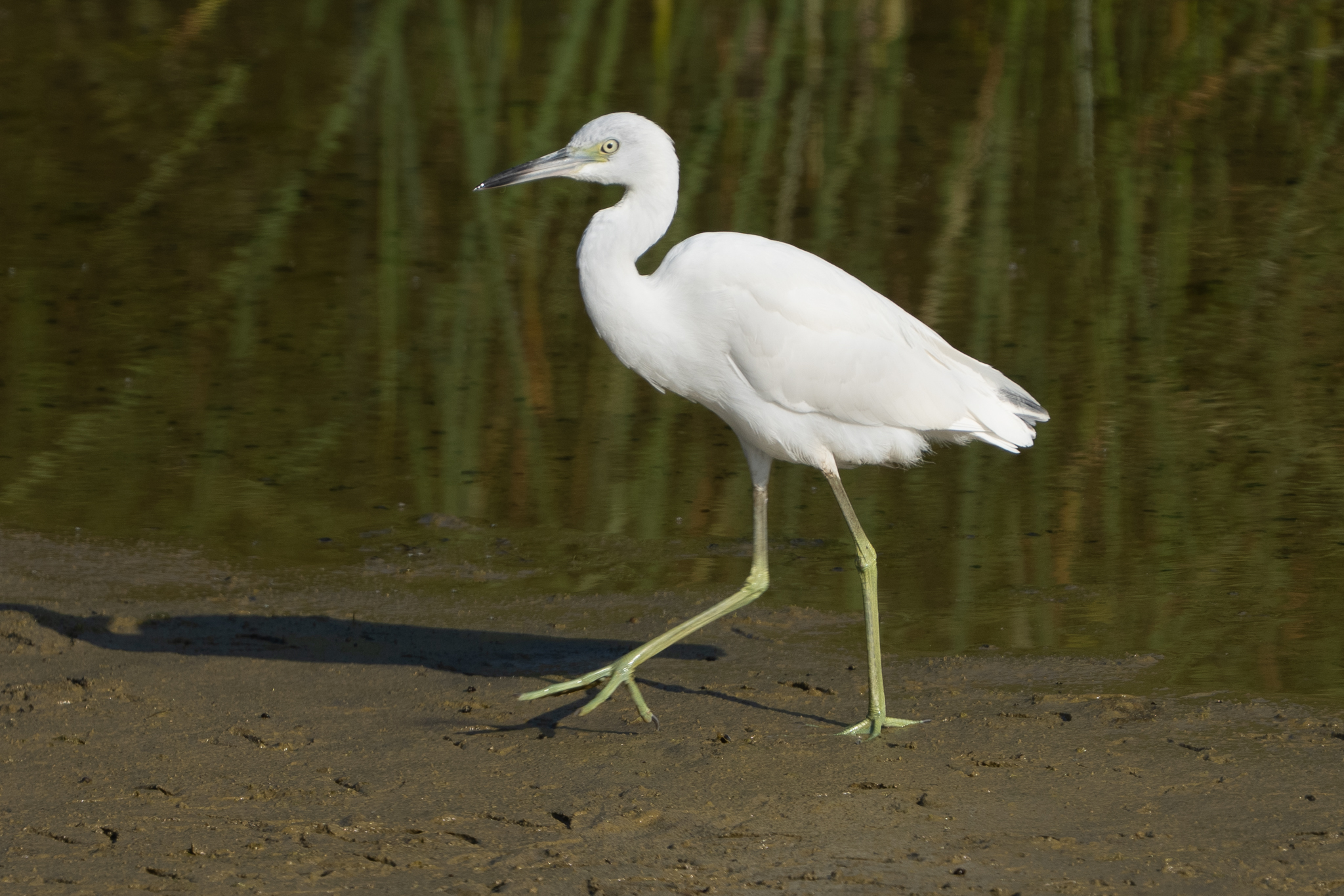 Reddish Egret (Egretta rufescens) is another bird less often seen west of the Rockies, and even where it is present, it is quite a bit less common than the Cattle Egret. Its distribution is entirely coastal, from Florida across the Gulf Coast, and along both coasts of Mexico and northern Central America. Its occurrence in California north of the Baja California peninsula is entirely accidental. I’ve logged this bird in eBird a whopping four times in Florida, and twice (same bird, same location, two different days) here in California.