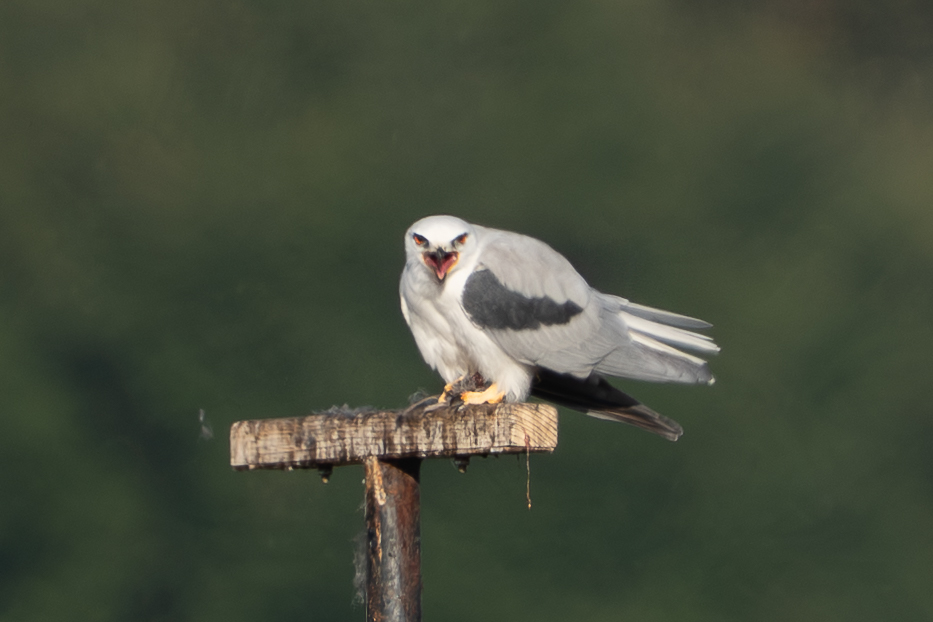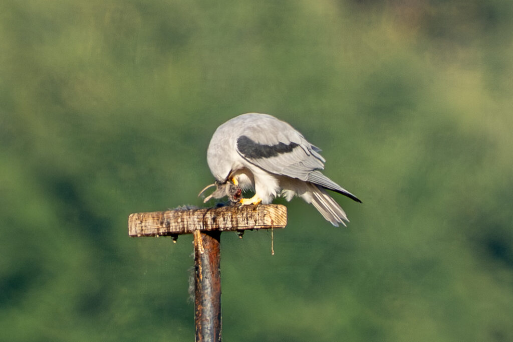 But if only took a minute or so for Kite 1 to return to the perch, breakfast still gripped in its talons.