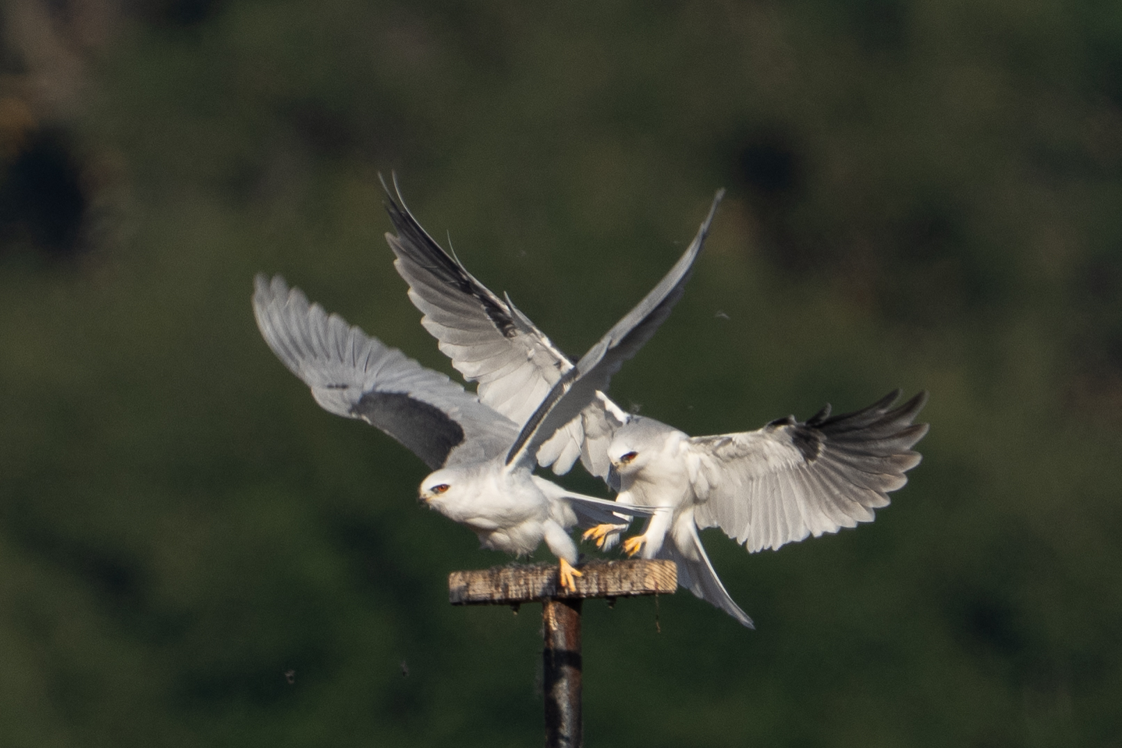This weekend, I went on the same walk, and saw what I believe to be the same birds. And once again, the discussion seemed to involve breakfast. Although this time, one of the kites was actually eating!