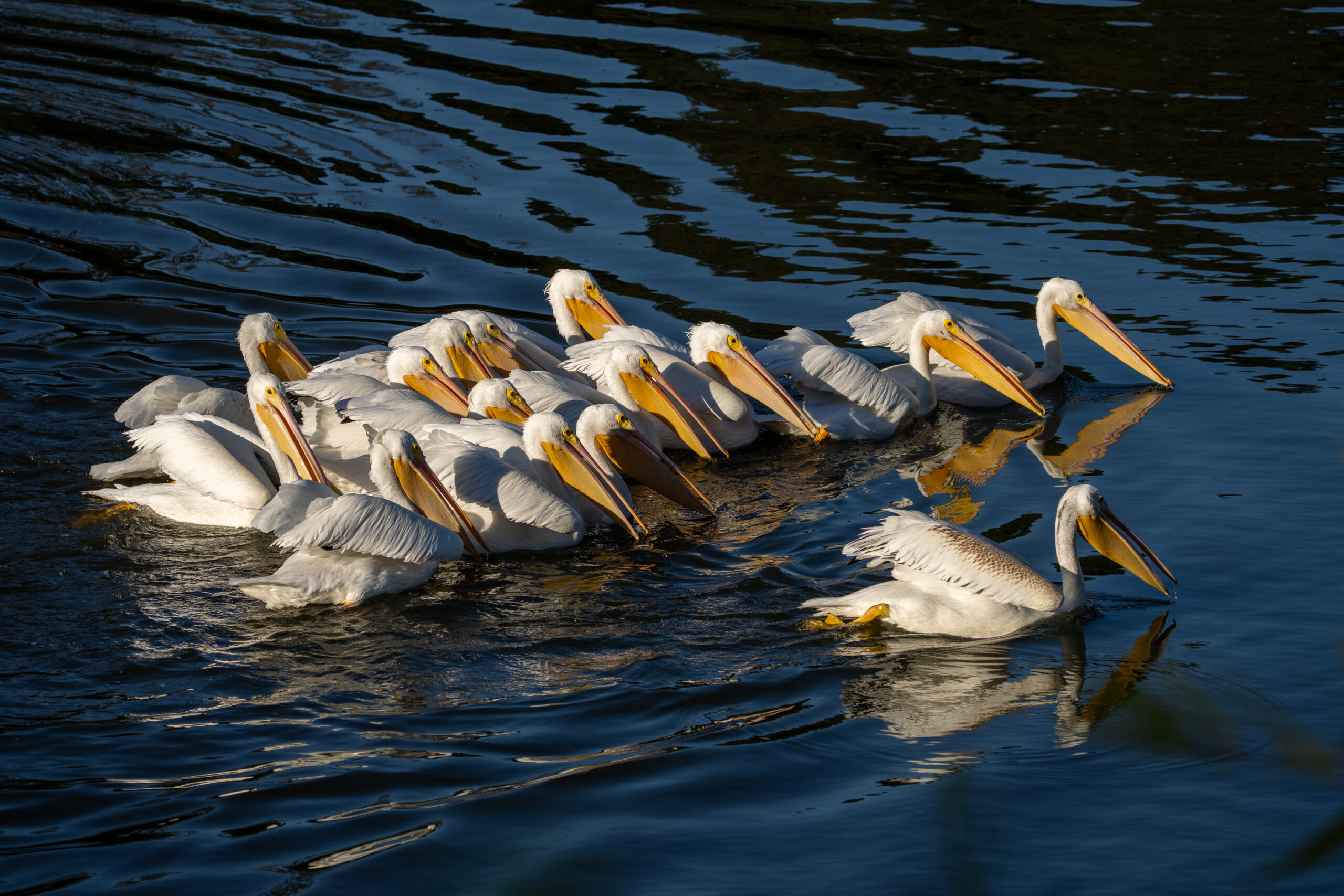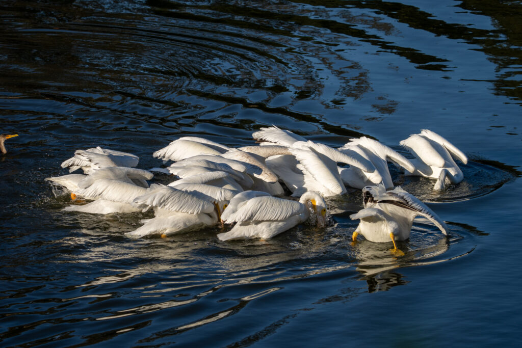 Every fall, the pelicans return to the lake in downtown Atascadero, California. And almost every school day, after dropping my boys off at high school, I stop by the lake to see what’s going on. Here’s what was happening today: