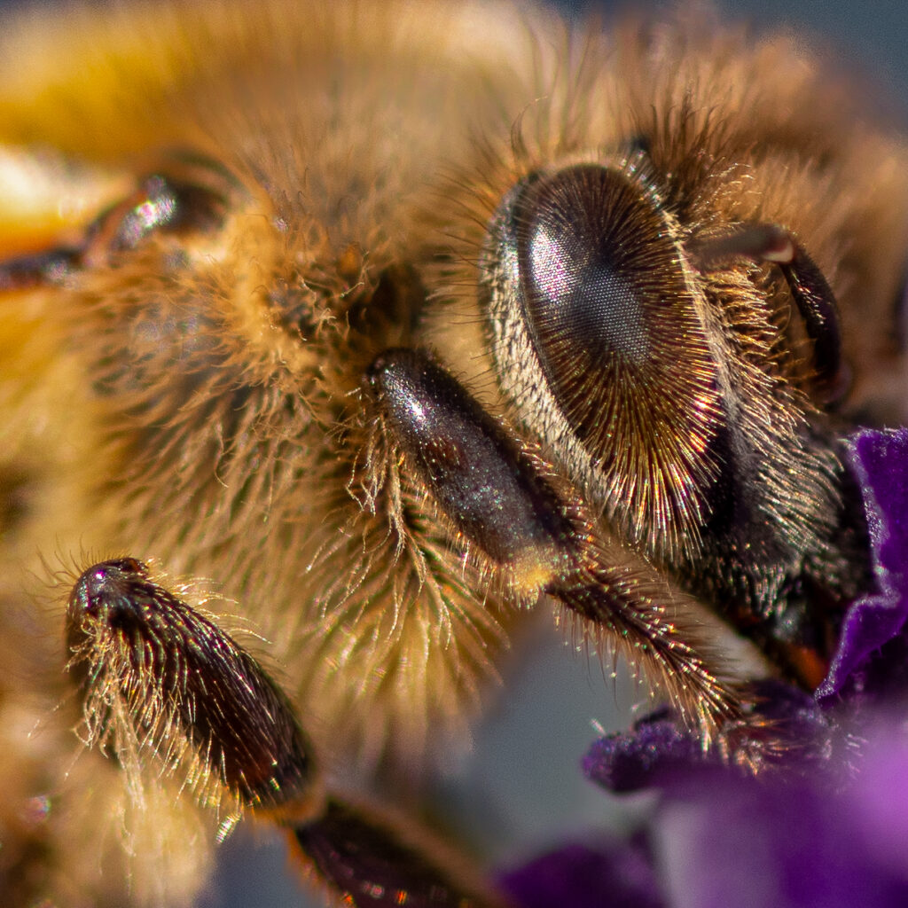 And it’s nice to know that upgrades to both my technique and my gear since 2014 have improved my photography. Back then I was just happy to see an insect and not have it fly away before I could get a photograph, so the images are, shall we say, less than aesthetically pleasing. Here’s my photo of a hairy honeybee eye from back then: