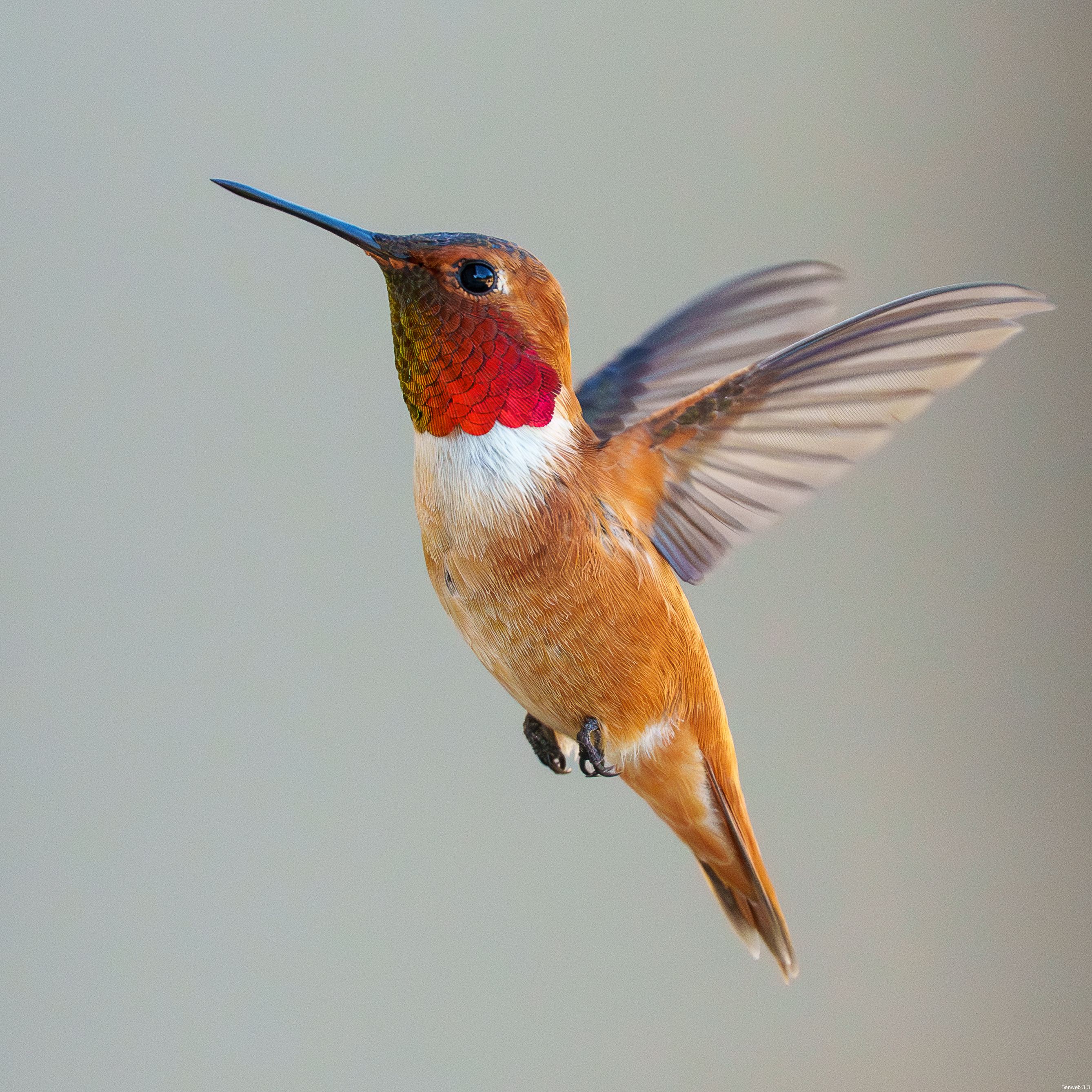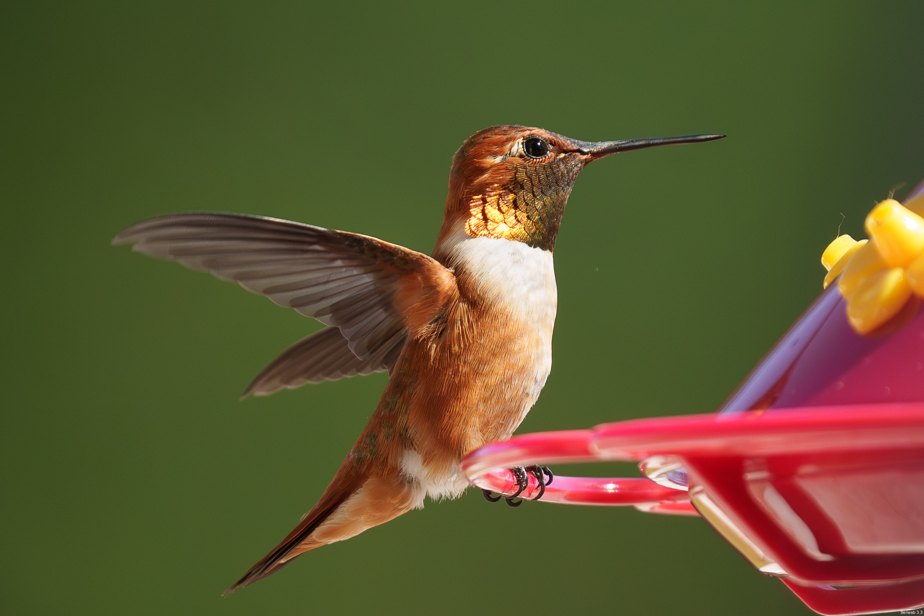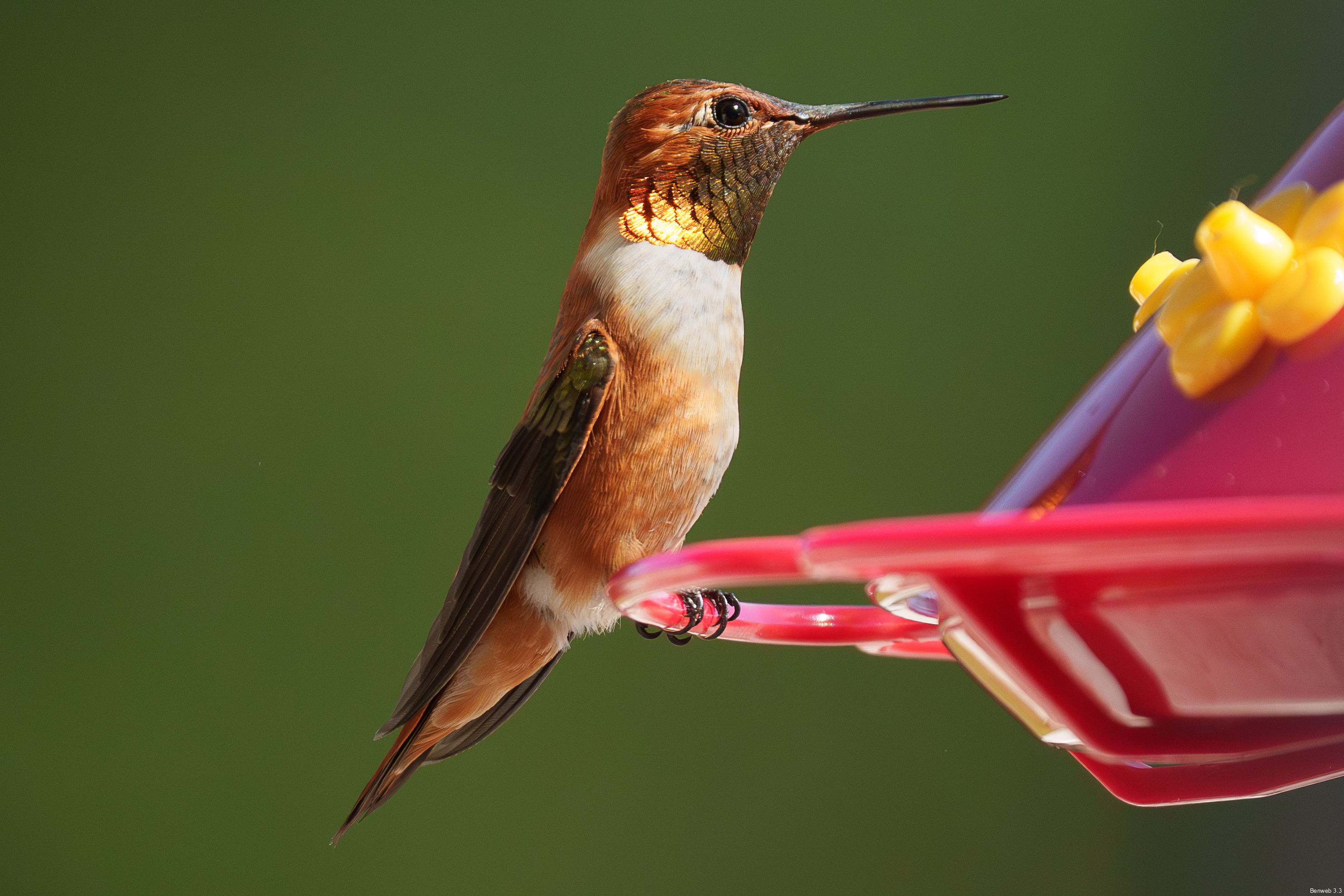 1y male Rufous Hummingbird preparing to go after an intruder.
